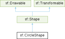 This class inherits all the functions of sf::Transformable (position, rotation, scale, bounds, ...) as well as the functions of sf::Shape (outline, color, texture, ...).
